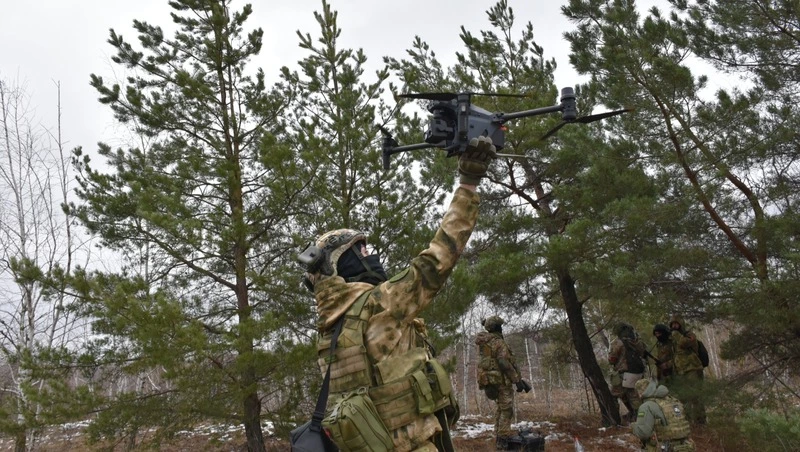 Группы стрелков перебежками продвигаются по лощине и посадкам. Залегают и маскируются всякий раз, когда над головой раздаётся характерный звук коптера. Место учений бойцам незнакомо. Командир спецроты Петруха рассказал, что квадрат выбрали вечером накануне, так что ориентироваться можно только по картам. И это тоже элемент боевой подготовки.