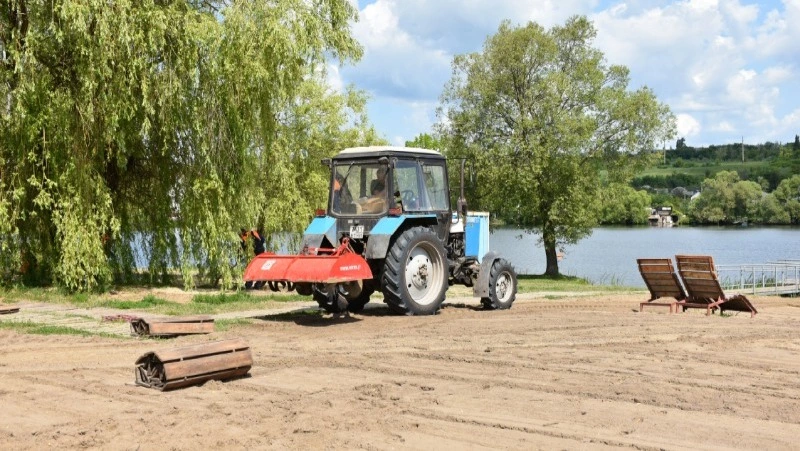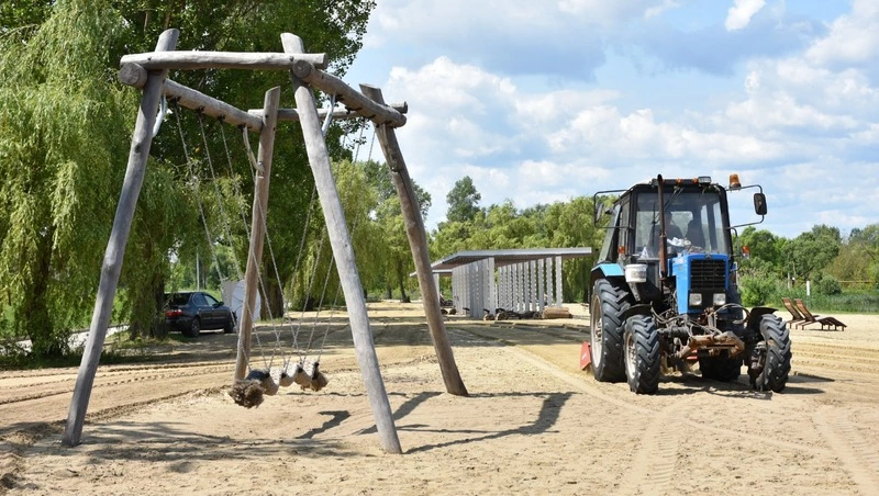 Трактор со специальным навесным оборудованием медленно двигается по пляжу, оставляя за собой ровные борозды. Идёт разравнивание песка и его фрезерование – мера необходимая для благоустройства пляжной зоны. В течение прошлого купального сезона отдыхающие, зачастую игнорируя мусорные контейнеры и баки, оставили здесь достаточно много бытового мусора, который ещё и втоптали. Да и ходить босиком по чистому и более мягкому песку, согласитесь, намного приятнее. За лето фрезерование будет проведено несколько раз.