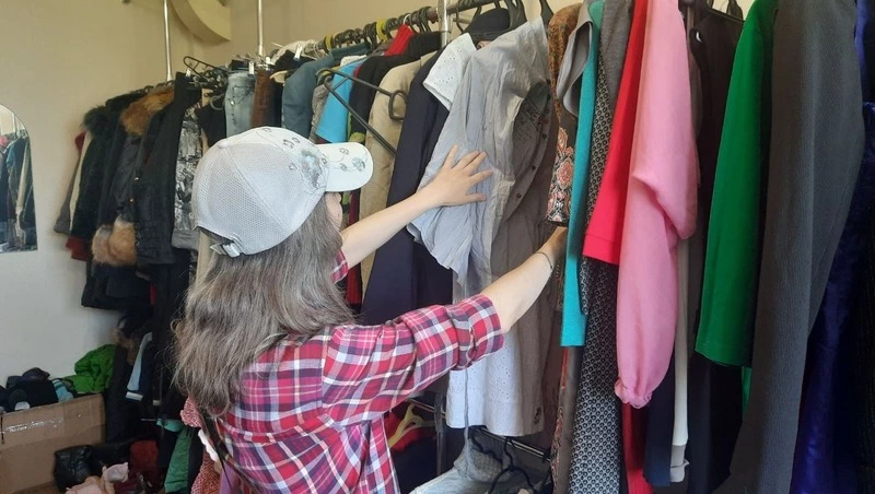 Здесь большой выбор одежды и для взрослых, и для детей. Кстати, казаки не только принимают вещи в дар от оскольчан, но сами закупают их на оптовом рынке в Воронеже. Подобрать гардероб людям помогает волонтёр Мария Хохлова. Она также собирает, сортирует и развешивает одежду. Девушка говорит, что в день к ним приходят по два-три десятка человек. Отмечает, что сейчас наибольшая потребность в детских вещах. Очень нужна мужская одежда – бельё, джинсы, брюки, свитеры, футболки, куртки. Переселенцы нуждаются также в посуде и постельном белье.