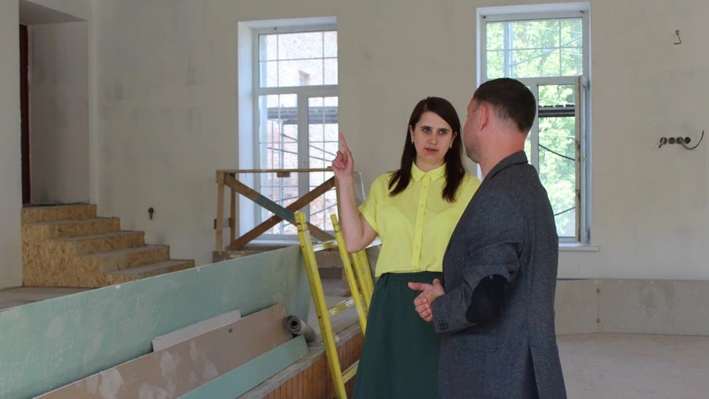 На объекте мы побывали вместе с директором школы искусств № 3 Татьяной Жигуновой и директором старооскольского управления капстроительства Дмитрием Бобылевым. Они рассказали о том, что уже сделано и какой станет обновлённая школа.