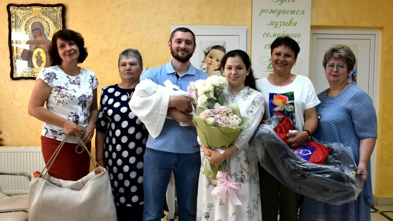 Пока мы беседовали, Маргариту подготовили к выписке, и она вышла в зал торжественной выписки новорождённых. Акушерка вынесла маленький свёрток с младенцем. Папа, бабушка и прабабушка смогли познакомиться с новым членом семьи. Шебекинскую семью от имени губернатора Вячеслава Гладкова поздравила заместитель начальника департамента внутренней политики министерства общественных коммуникаций Белгородской области Ирина Пигунова. Она рассказала, что всем шебекинским мамам, у которых дети родились в эвакуации, вручены подарки. Всего их 22. Заместитель начальника управления социальной защиты населения шебекинского городского округа Лариса Сибиркина также передала презенты: автолюльку, пожарные извещатели и набор для новорождённого. Маргарита Овчаренко до декрета четыре года отработала врачом общей практики в шебекинской поликлинике.