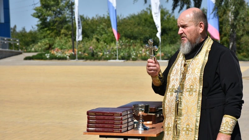 «Никогда не забывайте, что вы сыны великой и славной страны. Наши братья и сёстры защищают сегодня её независимость, право человека быть человеком. И вы должны готовить себя к тому, чтобы в случае необходимости встать на защиту Родины», – обращается к будущим воинам с напутствием отец Сергий, настоятель Свято-Пантелеймоновского храма в селе Долгая Поляна.