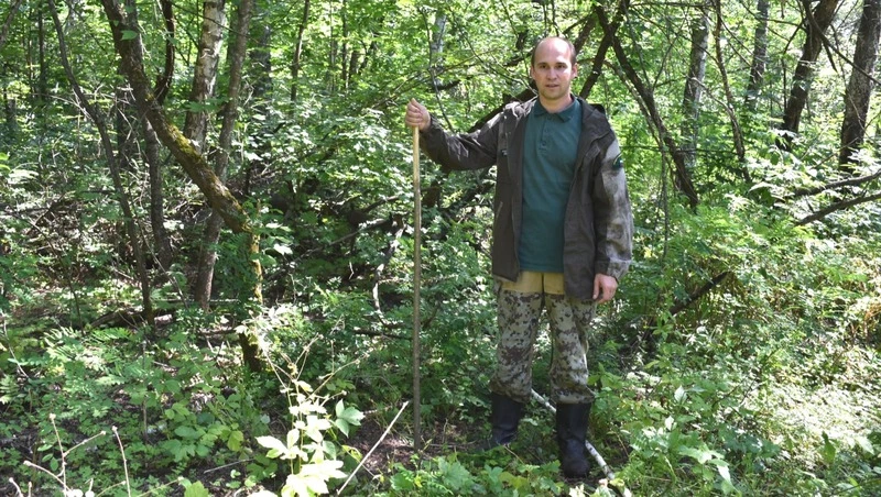 Место бывшего пожара выглядит, мягко говоря, не очень. Напоминает страшилки из фильмов-катастроф, где сухие деревья вздымают к небу костлявые ветви. Впрочем, в этом году из-за дождей очень разрослись трава и подлесок. Это смягчает общую мрачность картины. Мы продираемся через траву и поваленные стволы к деревьям-погорельцам. Павел Ситников показывает, где будет установлен деляночный столб. На нём укажут номер квартала, выдела, год вырубки лесосеки, её площадь. Чтобы обозначить участок, инспекторы лесоохраны сначала с помощью геодезического инструмента – буссоли, которой определят направление и рулетки, которой замеряют расстояние, наметят контуры, а затем пропилят границу, отделяющую здоровый лес от погибшего.