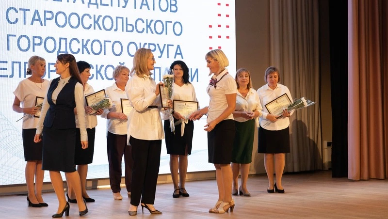 Тепло поздравили учителей председатель Совета депутатов Татьяна Карпачева и начальник департамента образовательной политики министерства образования Белгородской области Екатерина Клименченко. Лучшим педагогам вручили почётные грамоты и благодарности администрации округа, Совета депутатов округа, министерства образования Белгородской области.