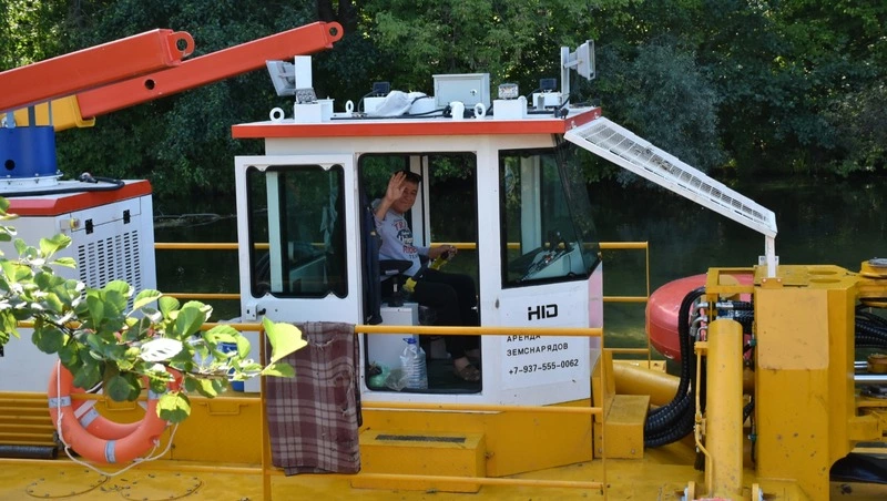 Кроме того, бригаде «Спецтранса» предстоит и фрезерование более 400 м дна Оскола. Это когда земснаряд передвигается по руслу реки и специальной фрезой размельчает грунт и перемалывает донные отложения. Вся эта масса по трубам откачивается насосом на берег. Ширина реки не меняется, а глубина по всему ходу работы земснаряда может увеличиваться за счёт того, что дно освобождается от мусора, накопившегося за долгие годы. Более 80 лет назад в этих местах проходили тяжёлые бои, но к счастью, пояснил наш собеседник, взрывоопасные предметы тех времён пока не попадались.