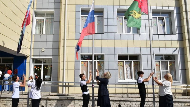Право поднять флаги Российской Федерации, Белгородской области и Старооскольского городского округа было предоставлено Наталье Илясовой, советнику директора по воспитанию и взаимодействию с детскими общественными объединениями Людмиле Золотых, классному руководителю «5в РЖД» класса Наталии Бурлак и лидерам школьного самоуправления Евгению Александрову, Кириллу Ахтырскому и Евгению Горленко. Поздравляя с новым учебным годом свой коллектив, директор школы зачитала поздравительный адрес губернатора Вячеслава Гладкова. Она пожелал детям позитивных эмоций и ярких побед.
