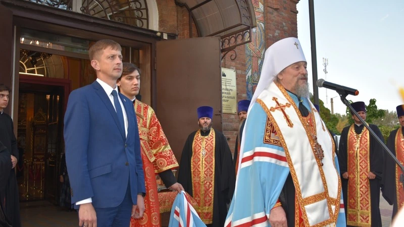 Митрополит Иоанн передал администрации округа хоругвь с изображением благоверного князя Александра Невского с надеждой, что Старый Оскол всегда будет опорой Святой Руси. Ковчег с мощами внесли внутрь храма. Здесь все прихожане смогут поклониться этой святыне.