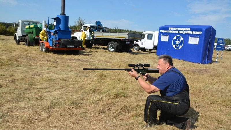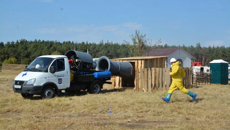 Организаторы учений хорошо подготовились. На огромной расчищенной от растительности площадке установили несколько строений, сымитировав личное подсобное хозяйство. Даже поставили табличку с адресом – улица Речная, 2, где и нашли труп свиньи, а недалеко и ещё один. Различные службы одна за другой подъезжали к очагу, точно следуя легенде учений. Специалисты провели дезинфекцию помещений. С помощью манипулятора туши помещали в инсинератор – высокотехнологическое устройство, предназначенное для уничтожения бытовых и промышленных отходов термическим способом. Что и было сделано на месте.