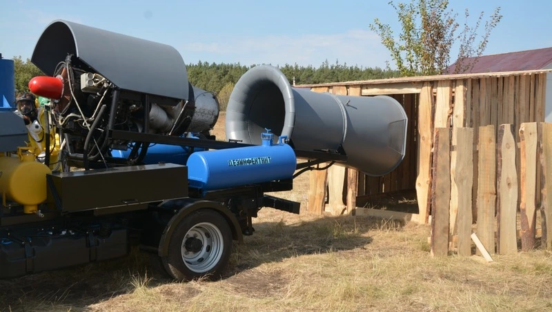 Самым запоминающимся стала демонстрация работы «Аиста-2М» – мобильной дезинфекционной установки с газотурбинным модулем. В основе машины настоящий авиационный двигатель.
