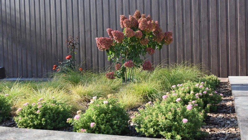 Из окон усадьбы с одной стороны открывается вид на голубые ели и туи. С другой – на декоративные злаковые культуры в сочетании с эхинацеей и очитком нежно-розовых оттенков. Ели выбрали сортовые, которые достигают в высоту не более 5-7 метров. А из жилых комнат хозяева дома наблюдают за цветением спиреи, роз и гортензий. В конце лета гортензии блистали белыми шапками, а сейчас приобрели багряный оттенок. Розы – самые разные, от белых и розовых до сиреневых. А вдоль забора выстроились в ряд скальные можжевельники. По мере разрастания они станут живой изгородью, оттенив забор. Есть и просторный газон, который прекрасно подходит как для подвижных детских игр, так и для отдыха на шезлонгах. Ирина собрала команду единомышленников, с которыми прорабатывает дизайн будущего сада. Коллег обучает сама.