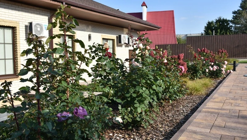 Сейчас в моде различные хвойные растения: туи, ёлочки, можжевельники. Ирина нередко использует их в своих композициях. Но вместе с тем очень любит и лиственные культуры, ведь листва – это всегда нежно, красиво, ажурно. Говорит, что без них – сад не сад. И это не только деревья. К примеру, живописно смотрится на участке дёрен. После того как осенью его листья опадают, ветви приобретают удивительно яркую окраску: жёлтую или красную и вносят колорит в белый зимний пейзаж. Злаки тоже можно оставлять на зиму. Особого ухода за ними не требуется. По весне их нужно лишь срезать и вновь из земли вырастут новые побеги. Ирина поделилась и секретом ухода за розами: не нужно бояться подрезать ветки. Формировать кустарники королевы цветов можно смело в течение всего вегетационного периода – обрезать доминирующие ветки на среднюю высоту куста для равномерного и пушистого его развития и обильного цветения.