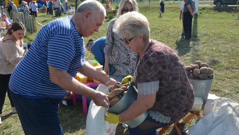 На фестивале можно было купить мешок картофеля за 1000 рублей, а большое ведро – за 250. Елена Симонова приехала в Дмитриевку из Витебска 28 лет назад. Ежегодно сажает по 30-35 вёдер картофеля сорта «Красная шапочка» и «Янка», которые радуют урожайностью. В этом году женщина выкопала его много, излишки реализовала на фестивале.