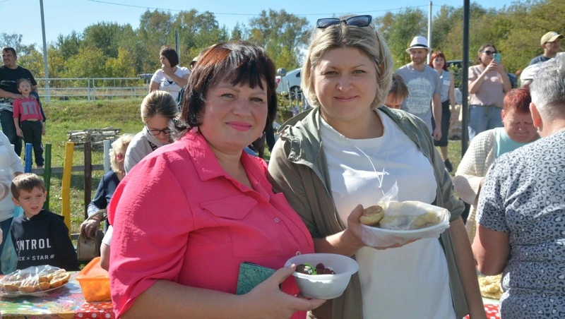 «Четыре стола накрыли. Мужья нам тоже помогали. В качестве декорации выставили и поделки из собранного урожая. Это творения рук Надежды. Я активно участвую в общественной жизни села. И мы скучали без праздника, общения с односельчанами. Все вырученные средства от продажи нашей продукции пойдут на необходимые покупки для участников СВО», – презентуя работу, сказала Валентина Анатольевна.