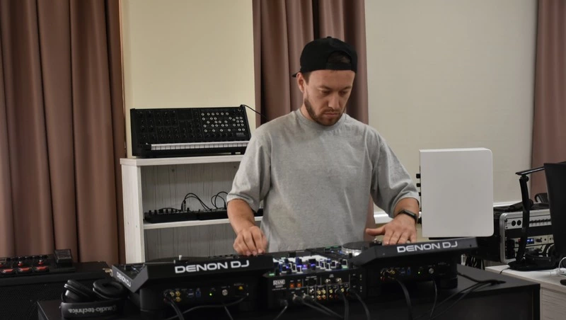 Вместе с Романом Костиным мы прошлись по аудиториям. Студия электронной музыки поражает обилием музыкальных инструментов. Здесь есть электронная ударная установка, на которой можно играть даже почти бесшумно – в наушниках. Изящные электро- и бас-гитары, синтезаторы, микшерский пульт. Когда мы зашли, за микшерским пультом работал профессиональный диджей и наставник школы Дмитрий Марчев. Он обучает ребят диджеингу, сведению треков, созданию диджей-сетов. Пару лет назад ДШИ № 1 объединила старооскольских юных музыкантов в симфонический оркестр. В планах – создать для него концертную программу «Симфо-микс» совместно с диджеем.