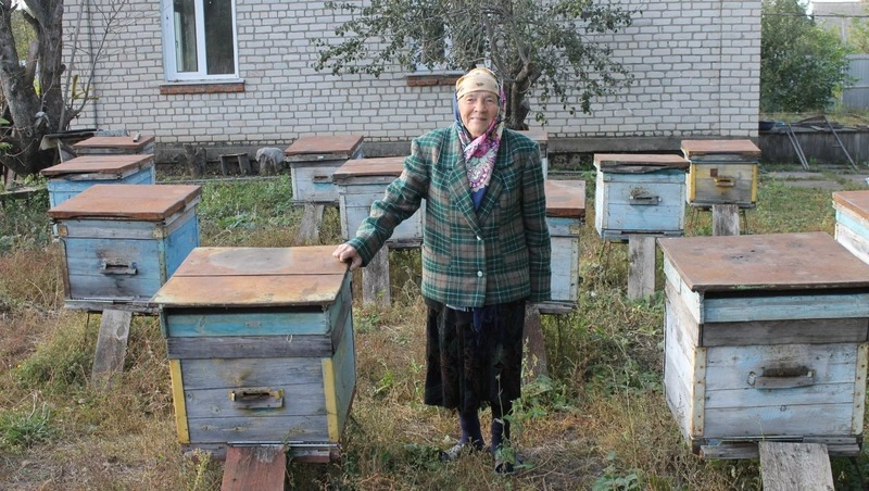 У хозяйки 17 ульев. Занимается пчёлами более 36 лет, ещё с мужем начинали. Считает, что эти насекомые лечат её, когда кусают. С интересом наблюдает за их жизнью.