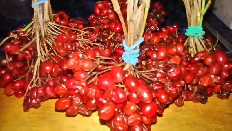 Заканчиваю сбор калины. На самой верхушке дерева остались висеть кроваво-красные ягодки, которые оставила птицам на зиму. Но и себе хватило урожая. Не всем нравятся чуть горьковатый вкус этой ягоды, а я очень люблю её. В моём саду растут две калины, одна кустарником, когда-то много лет назад принесённая из лесу. Вторая – деревцем и довольно высоким. Ягоды на нём чуть крупнее лесных, но по вкусу такие же как лесные.