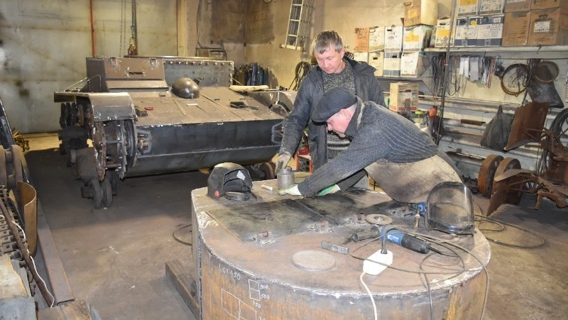 И ещё один легендарный советский танк в следующем году должен выйти из ворот мастерской – «Т-34». Он будет вторым, какой изготовили братья. Сейчас вместе с помощниками они делают корпус боевой машины. За основу планируется использовать запчасти танка «Т-55». Их размер, по словам мастеров, практически одинаковый. За исключением, пожалуй, бандажа, который у пятидесятипятки немного шире. Оригинальными будут ведущие звёздочки, натяжные катки, гусеницы, даже тросы и ломы, а возможно, и баки. На «Т-26» двигатель планируют включить весной будущего года, а на тридцатьчетвёрке года через полтора.