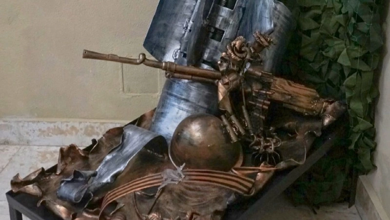 Центральное место в экспозиции будет занимать инсталляция «Защитникам Отечества». Это работа Сергея Кулеша, кузнеца из Донецка. С 2014 года он служил в ополчении, в батальоне «Восток» и в отдельном батальоне специального назначения. Сейчас подполковник Сергей Кулеш является военным комендантом Макеевки. Он награждён Георгиевскими крестами IV и III степени и медалью «За отвагу». В свободное от службы время занимается созданием кованых изделий из гильз, осколков снарядов, военной и авиационной техники. Его работы установлены в Углегорске, Енакиево, Симферополе и Донецке.