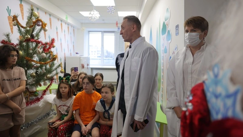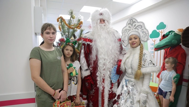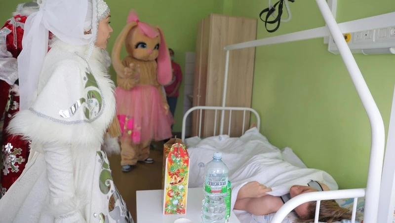 Дед Мороз, Снегурочка и вся свита побывали в трёх отделениях: травматологическом, педиатрическом, а также хирургическом, занимающем два этажа. Не все дети смогли выйти в холл. К ним гости заглянули сами.