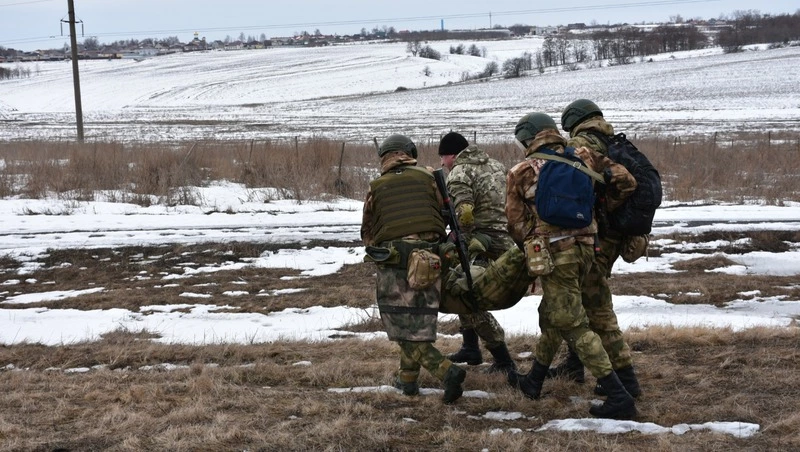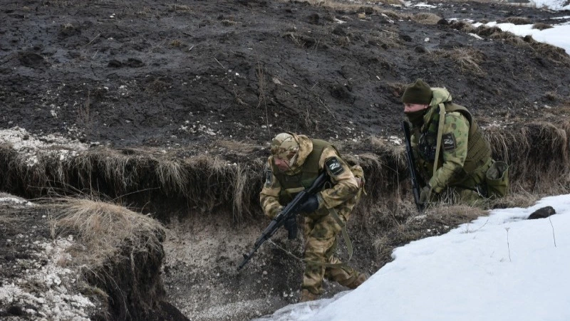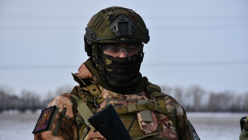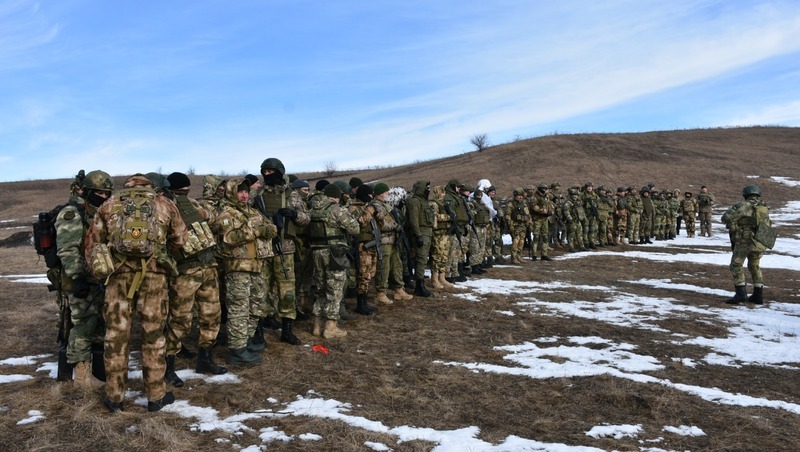 В строю добровольческого подразделения не только мужчины, но и представители прекрасной половины, которым совсем скоро предстоит принимать поздравления с Международным женским днём. Но пока мартовский день ещё совсем не напоминает о наступившей весне. На холмах и в поле по-прежнему господствует снег, а пронизывающий ветер заставляет поглубже натянуть шапку. И всё же бойцам мёрзнуть некогда: они отрабатывают движение подразделения в походной колонне, перестроение в предбоевой и боевой порядки, штурм опорного пункта условного противника. На отдельных точках занимаются разведчики-диверсанты, операторы БПЛА, миномётчики взвода огневой поддержки и санинструкторы.