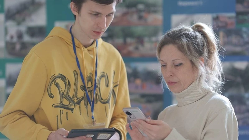 Молодые люди с бейджиками «Знаю, как благоустроить город, и вас научу» с помощью планшета демонстрировали старооскольцам схемы объектов, участвующих в голосовании. Помогали пройти авторизацию с помощью номера мобильного телефона или через Госуслуги, выбрать из перечня дизайн-проект для реализации.