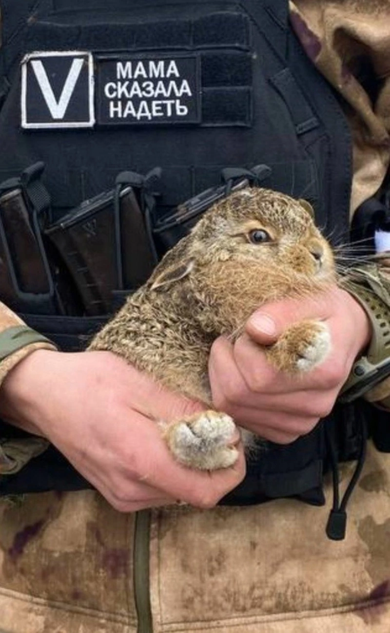 На фото – милый кролик, немного напуганный и совсем не похожий на грозное солдатское начальство. Но кто его знает, какой он по характеру. Может, строит всех, до кого дотянется. Не только Прапорюга скрашивает досуг бойцов.