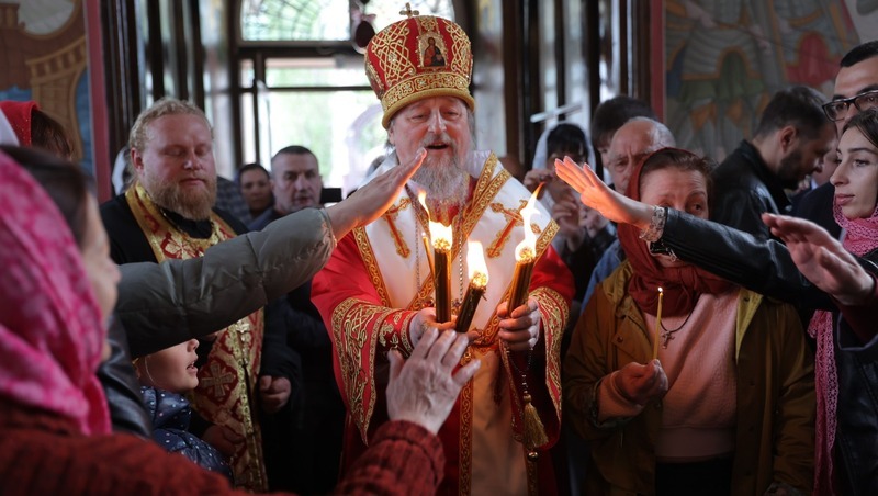 «Что невозможно для человека, возможно для Бога, – сказал митрополит Иоанн. – Мы сегодня с вами встречаем Пасху, когда слышим колокольный звук, перемешанный с сиренами предупреждения о ракетных атаках. Мы встречаем Пасху в полуразрушенных храмах, где мало людей, со скорбью о тех, кто безвинно умер. Из-за наших грехов возникают войны, убийства, разрушения, страдания земля. Всё это рукотворное человеческое бесчинство. И вот, чтобы не происходило этого, нам нужно сделать всё для того, чтобы сердца наши смягчились. Сегодня к нам прибыл Благодатный огонь примерно в восемь часов утра, как раз мы завершили Пасхальную службу, и мы вместе с губернатором Вячеславом Гладковым встретили этот Благодатный огонь, белгородские учителя сопровождали его, и это тоже символично, потому что сегодня самые уязвимые и страдающие в сложившейся ситуации – это дети. И мы с вами должны сделать всё, чтобы у них всё же было счастливое детство. Решая все встающие сегодня перед нами задачи, белгородцы держатся мужественно и стоят прямо, не сгибаясь под тяжестью испытаний, которые проходят».