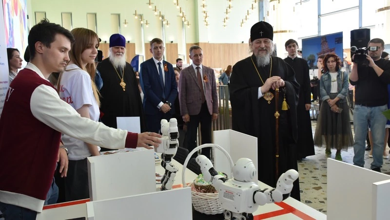 Молодёжный форум «Студенческая Пасха» прошёл в Старом Осколе в минувший понедельник, 6 мая. Участниками фестиваля стали наиболее активные, инициативные и стремящиеся познать всё новое студенты высших и средне-специальных учебных заведений, учащиеся школ нашего города. В числе почётных гостей – митрополит Белгородский и Старооскольский Иоанн, министр культуры регионального правительства Константин Курганский и глава администрации округа Андрей Чесноков. В фойе «Центра молодёжных инициатив» разместилась выставка Старооскольского художественного музея с работами местных мастеров кисти, посвящёнными Великой Отечественной войне. На интерактивных площадках ребята и их наставники удивляли посетителей своими достижениями в разных областях науки и творчества. Проводили химические и физические опыты, плели кольчужное полотно, демонстрировали роботов, модели морских судов и самолётов. Каждый желающий мог подписать открытку для бойцов, участвующих в специальной военной операции или совершить прогулку по Александро-Невскому кафедральному собору с помощью очков виртуальной реальности. Глава Белгородской митрополии с удовольствием посетил все площадки, а затем освятил пасхальные куличи для старооскольского студенчества.
