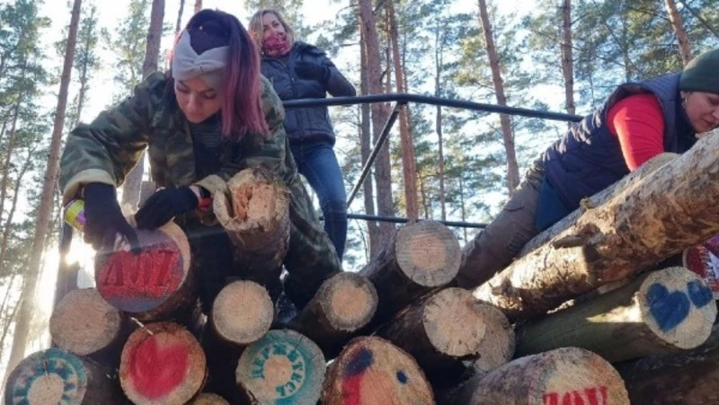 Женщин на валке леса, на самом деле, немало. Но бойцы всё ещё удивляются, видя, как они тащат бревно. Один из командиров Наталье так и заявил: «Мне ребята в части не поверят, если расскажу, что девчонки для них брёвна таскают». А они успевают ещё краской через трафарет нарисовать на срезах какие-нибудь сердечки-смайлики. Солдаты говорят: «Мы же срезом в землю воткнём и пропадут ваши рисуночки». А женщины в ответ: «Вот вы же видите. И настроение у вас улучшилось. Значит, всё правильно делаем».