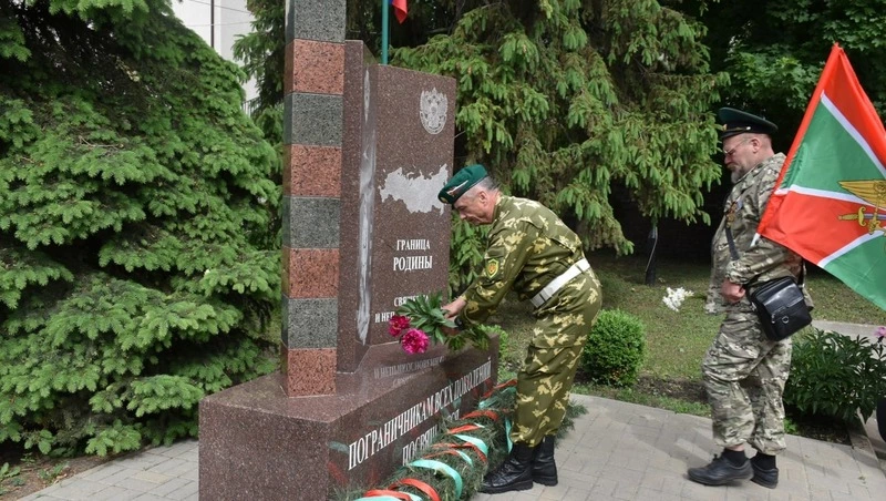 В парк воинской славы к памятному знаку «Пограничники всех времён» зелёные фуражки пришли задолго до назначенного времени. По-братски обнимались друг с другом, вспоминали боевые юные годы.