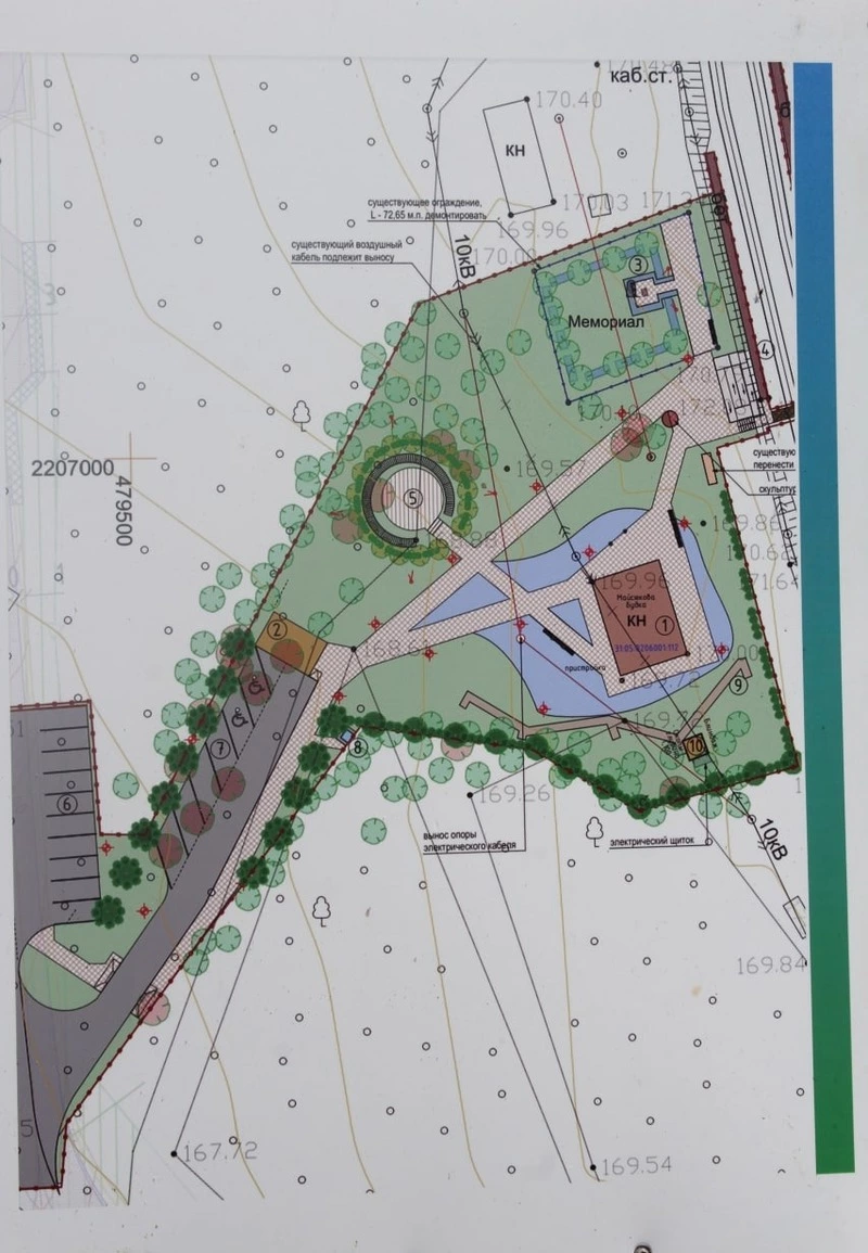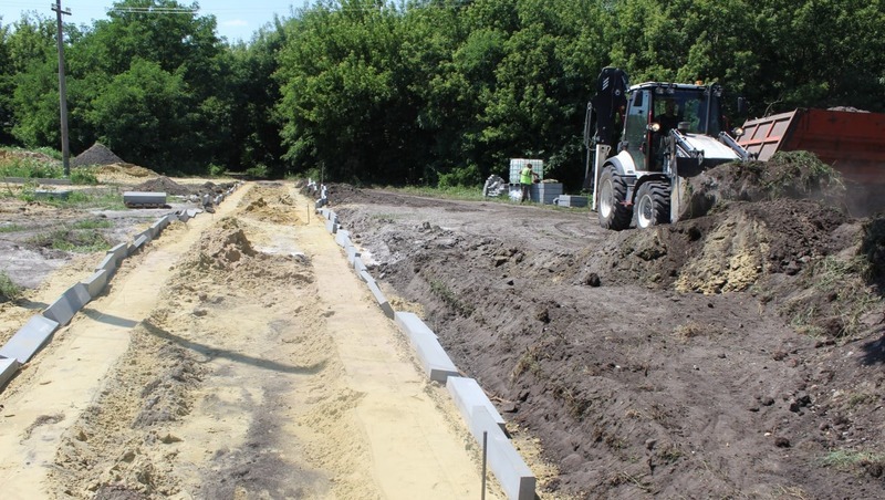 Работы начались в начале июля и сейчас в самом разгаре. Бульдозер сделал планировку территории, сгрузил в кузов КамАЗ снятый грунт и спиленные ветви. Рядом раздаётся звук бензопилы – рабочие убирали старые заросли, создавая больше пространства. Появились контуры будущих дорожек: строители установили бордюры, отсыпали песок.