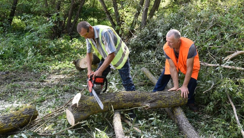 Недалеко от этого места, где трудились рабочие, метрах в трёхстах, над кручей была водяная мельница. Со временем потоки реки иссякли. Осталось лишь русло. Когда идут сильные дожди или обильно тает снег, оно наполняется водой. Её проходу мешают заросли деревьев, выпилкой которых занимались сельские рабочие: и подтопления огородов не будет, и бойцам СВО отправят нужную им древесину.