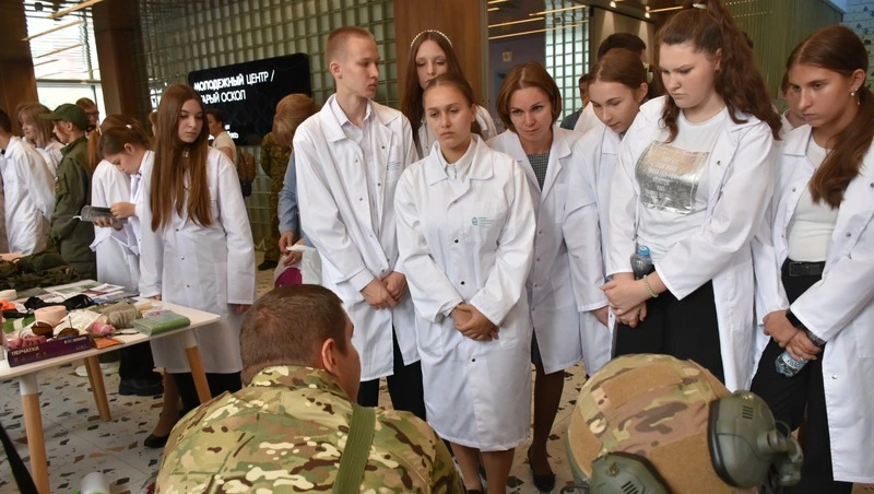 Отдельным акцентом прозвучала сегодняшняя роль медицинских работников в зоне специальной военной операции, освобождённых городах и посёлках, приграничных районах, подвергающихся обстрелам со стороны противника. Врачи и медсёстры спасают там людей, зачастую рискуя собственными жизнями. Таким героем для юных медиков стал врач скорой медицинской помощи регионального отделения службы медицины катастроф и санитарно-авиационной эвакуации Станислав Григорьев.