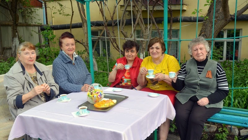 Я решила, что надо познакомиться со старожилами этого дома. Согласились встретиться четыре женщины. Все пенсионерки и живут здесь около 20 лет. Их биографии, как на подбор, тривиальными не назовёшь. Мы разместились за столом в уличной беседке и поговорили…