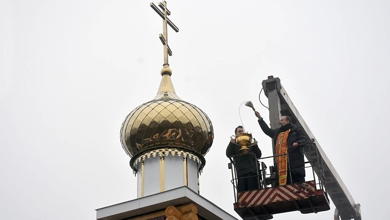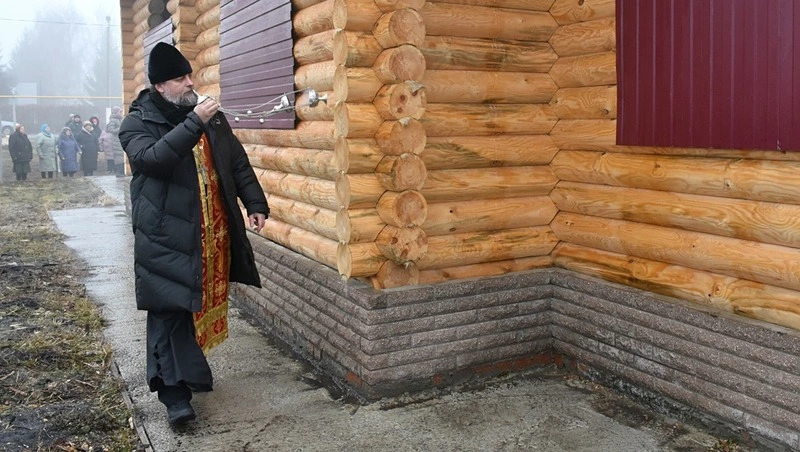 Минувшей осенью благодаря содействию фонда «Поколение» на фундаменте смонтировали сруб из сибирской сосны общей площадью чуть более 60 квадратных метров. И вот на днях сооружение увенчали золочёный крест и купол, а их по церковным канонам требовалось освятить.