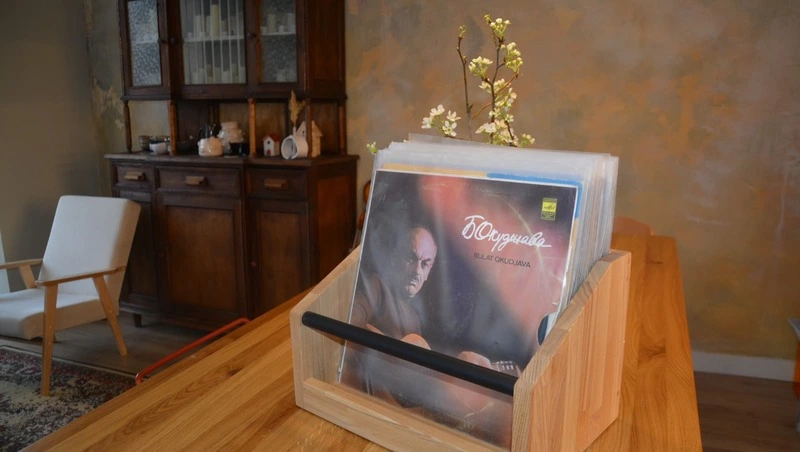 Изюминку обстановке придают картины и изделия мастеров декоративно-прикладного творчества. Многие из этих предметов при желании можно приобрести, как и виниловые пластинки, которых здесь целая коллекция. В кафе есть проигрыватели для винила. Посетитель даже может принести свою пластинку и послушать здесь, если дома нет такой возможности. Кстати, название заведения «12 дюймов» – это отсылка к стандартному размеру пластинки.