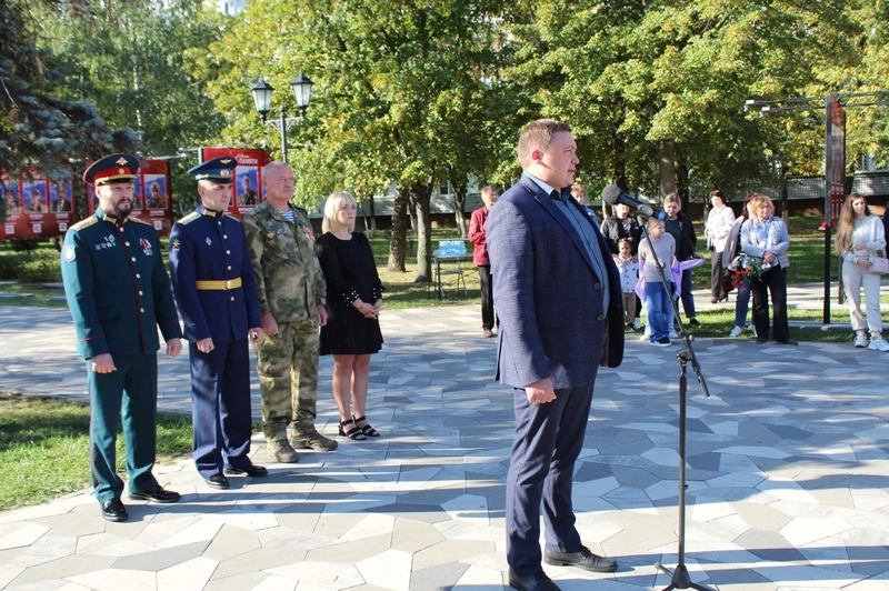 На открытии присутствовал и действующий офицер Вооруженных сил РФ, участник СВО лейтенант Максим Рысин.