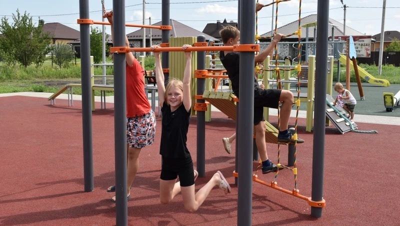 Работы начались в апреле этого года. Специалисты установили безопасные игровые комплексы, песочницы и качели, воркаут-площадку, сделали освещение и ограждение, а также уложили асфальтовое и резиновое покрытие и тротуарную дорожку.