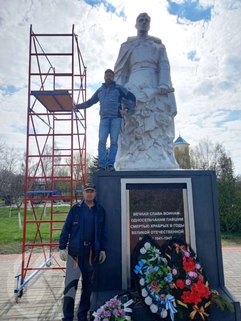 «Скульптура уже была в трещинах. Фигуру солдата очистили от старой краски и отслоившейся штукатурки. Зашпаклевали и покрасили серебристой краской. Обновили цвет постамента и мемориальных досок. Заменили старые металлические уголки на новые, – говорит Юрий Игоревич. – Впервые довелось работать на таком объекте. Достойно подготовить памятное место к встрече 80-летия Великой Победы – наша святая обязанность. Важно сохранить память о тех, кто отдал жизни за нашу свободу».