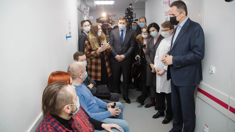 Во время первого визита Вячеслав Гладков побывал в реконструируемом здании будущего детского клинико-диагностического центра в микрорайоне Олимпийский. Осмотрел и детскую поликлинику №3, где идёт капремонт.