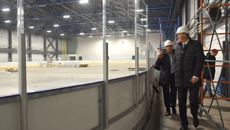 Строительство крытого ледового катка на улице Центральной ещё продолжается, но уже ясно видны перспективы этого спортивного объекта. Тарас Хтей интересовался буквально каждой деталью на этом спортивном объекте: из каких материалов выполнены защитные борта на арене или стены в помещениях, какое планируется закупать оборудование для заливки и обслуживания льда. Увиденным остался доволен: