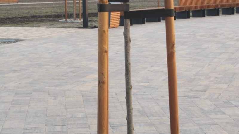 Идём дальше. Любуемся стройными молодыми деревьями, которые привезли из других регионов России и даже из голландского питомника. Там деревца бережно выращивали в течение 6–12 лет. И что вы думаете? Кто‑то уже сломал пополам одно из них. К слову, когда расчищали местность для будущего парка, многие жители возмущались, что вырубили росшие здесь деревья. Но это был преимущественно американский клён, считающийся сорным растением. Зато высадили берёзы и липы, рябины и клёны, дубы и сосны. И что теперь? Не бывать здесь тенистому парку?