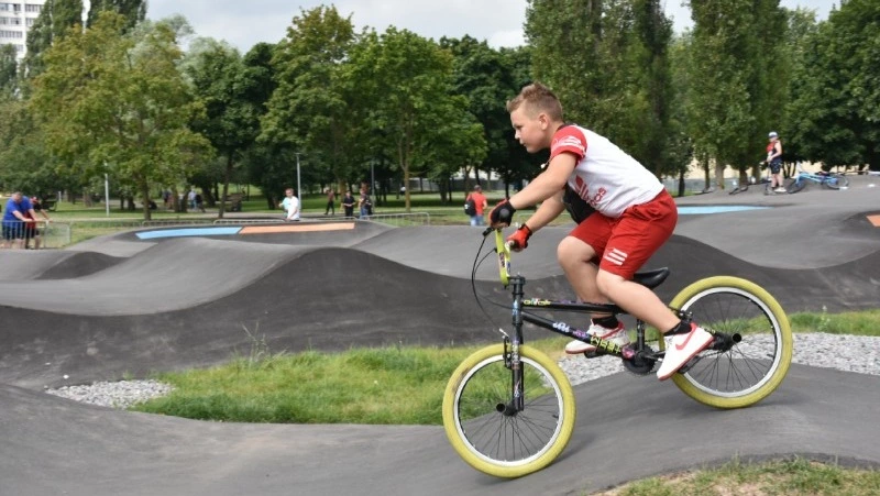 Этот спортивно-развлекательный объект появился в нашем городе благодаря фонду Андрея Скоча «Поколение» и депутату Госдумы Никите Румянцеву, а вот заботы по благоустройству прилегающей территории взял на себя муниципалитет. Полотно памп-трека было готово к использованию 5 июля. Позже были проложены тротуары, проведено освещение, установлены лавочки и урны, оборудована велопарковка. Есть даже флагштоки для придания торжественности предстоящим соревнованиям.