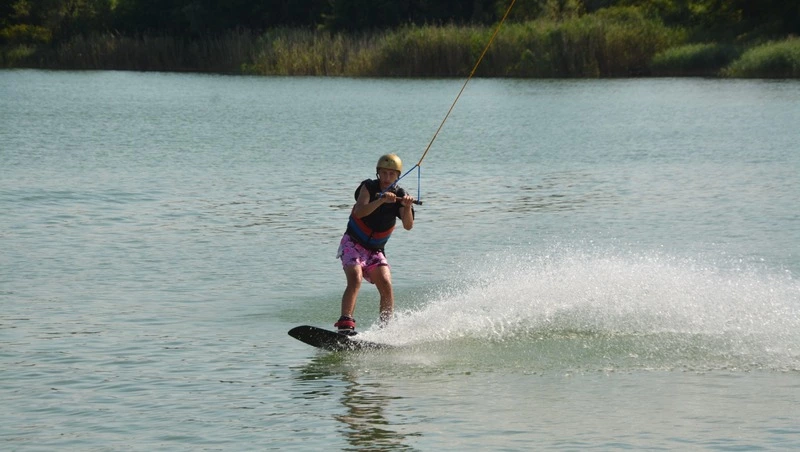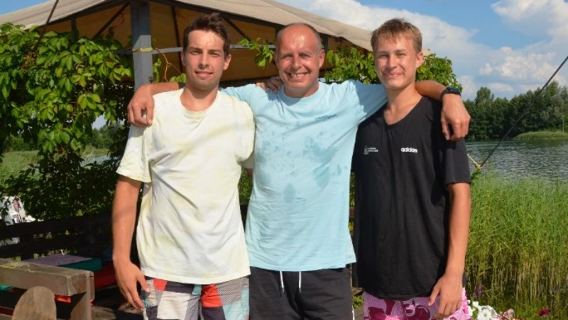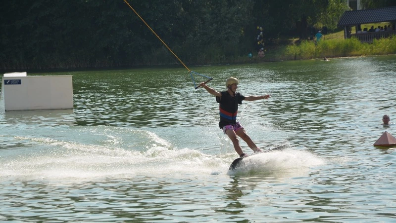 Отец и сыновья не стали долго рассказывать о своём увлечении вейкбордом. Дмитрий надел водные лыжи и с азартом прокатился по глади воды, удивил прыжками с трамплина, а Степан и Тимофей впечатлили пируэтами на досках. Да, в такую жару этот вид спорта – то, что надо!