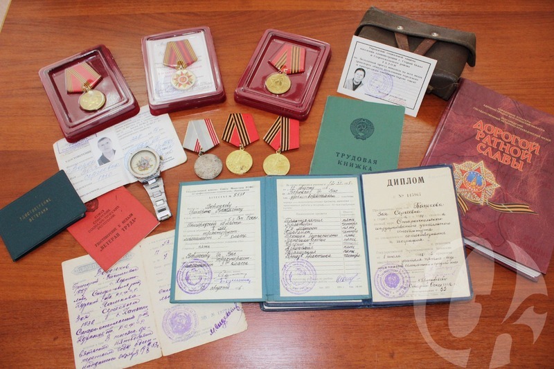 Недавно одна из читательниц передала в музей документы учительницы Зои Сергеевны Воронковой и её мужа Григория Васильевича из Хорошилова, а также часы и юбилейные медали.
