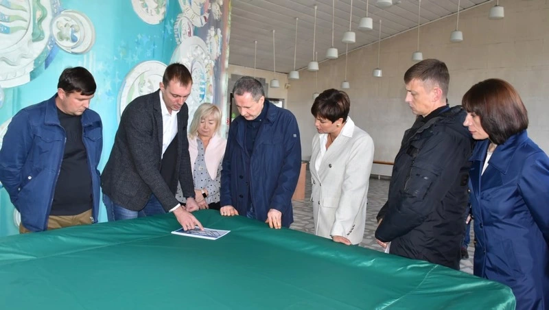 Вячеслав Гладков вместе с главой администрации округа Андреем Чесноковым, директором «Академии плавания», президентом федерации плавания Белгородской области Сергеем Фесиковым и министром спорта Натальей Жигаловой обсудили планы и темпы реконструкции бассейна.