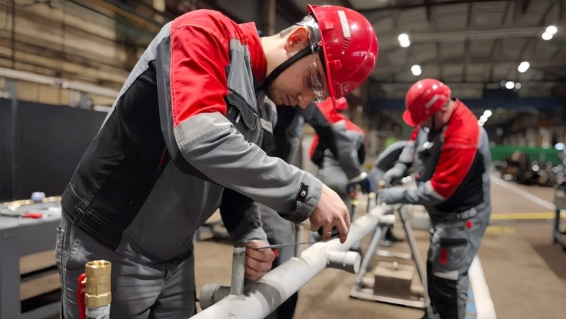 Слесари-ремонтники выполняли сборку узла учёта хозпитьевой воды, фильтра и элементов запорной арматуры. Электрогазосварщики продемонстрировали мастерство в сварке трубного шва под углом 45 градусов.