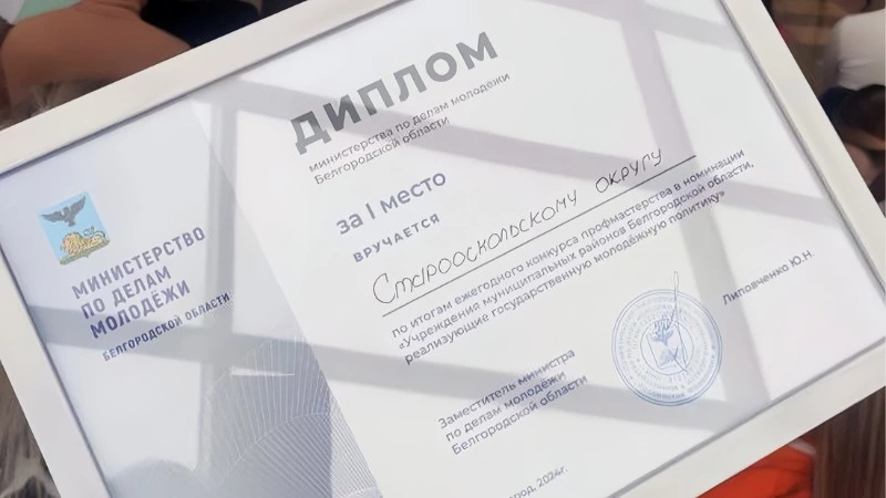 Диплом за I место представителям нашего округа вручили по итогам ежегодного конкурса профмастерства в номинации «Учреждения муниципальных районов Белгородской области, реализующие государственную молодёжную политику».