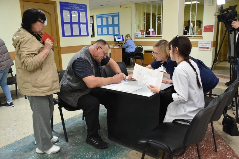 Каждого пациента встречали представители центра общественного здоровья и медицинской профилактики. Фельдшер окружной больницы Святителя Луки Крымского Наталья Крылова и студентка медколледжа Мария Чепчурова оформляли необходимую документацию, а сопровождающие подсказывали, в каком кабинете принимает тот или иной специалист. Медики вели приём не только в здании центра, но и в мобильном комплексе, который прибыл из Белгорода.