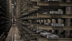 Он используется в сортопрокатном цехе №1 для укладки металла на стеллажи промежуточного высотного склада.